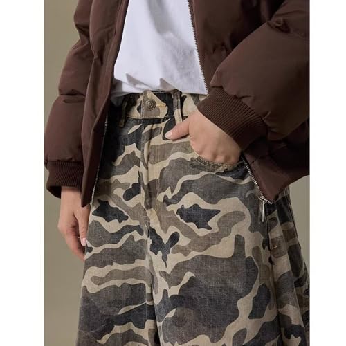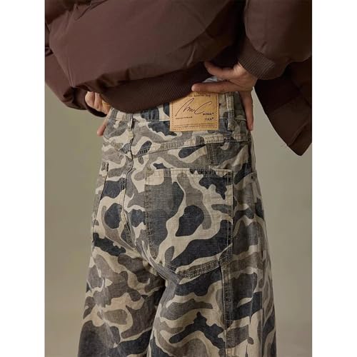 Camo Jeans Men Duck Lounge Camoflash Pants for Men Baggy Wide Leg Army Fatigue Pants for Men Black Camouflage Streetwear