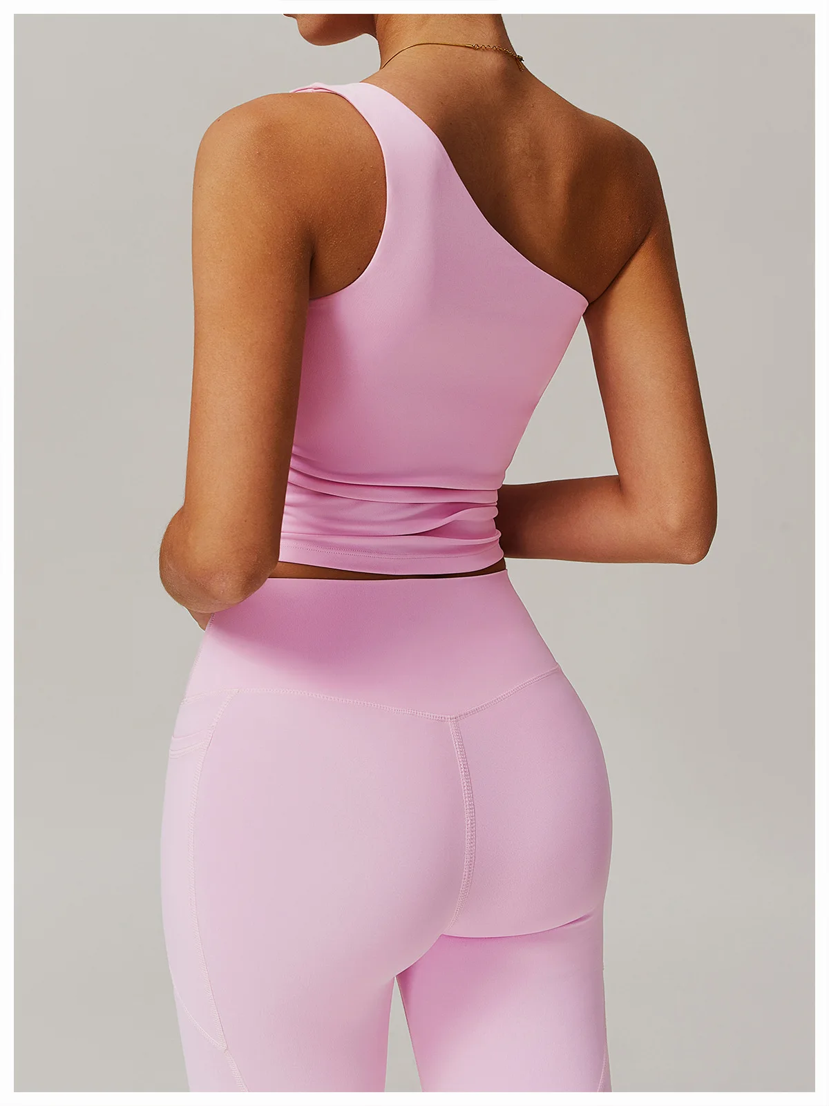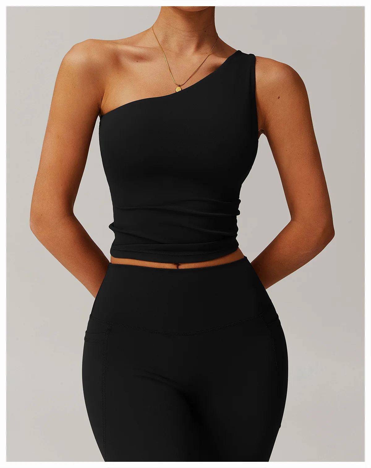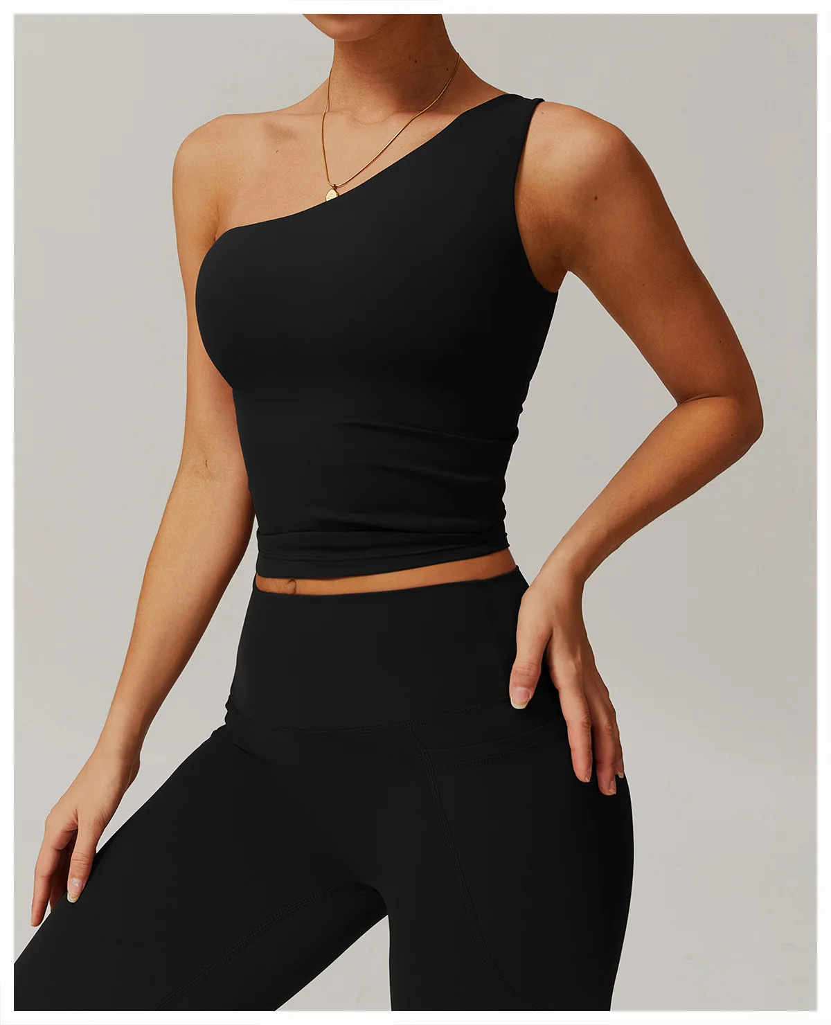 New Sexy Vest One Shoulder Running Sports Tank Top Women's Oblique Shoulder Sleeveless Fitness Yoga Vest Top Sports Push Up Bras