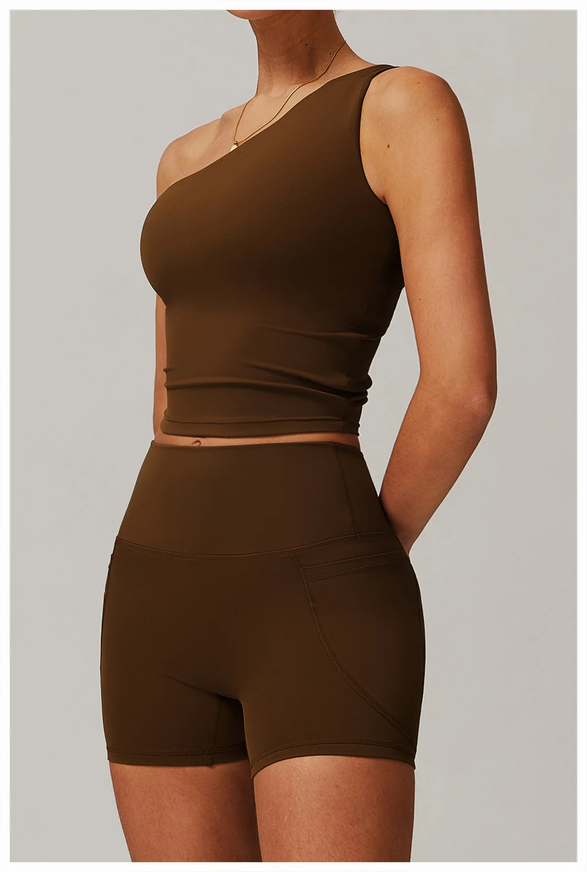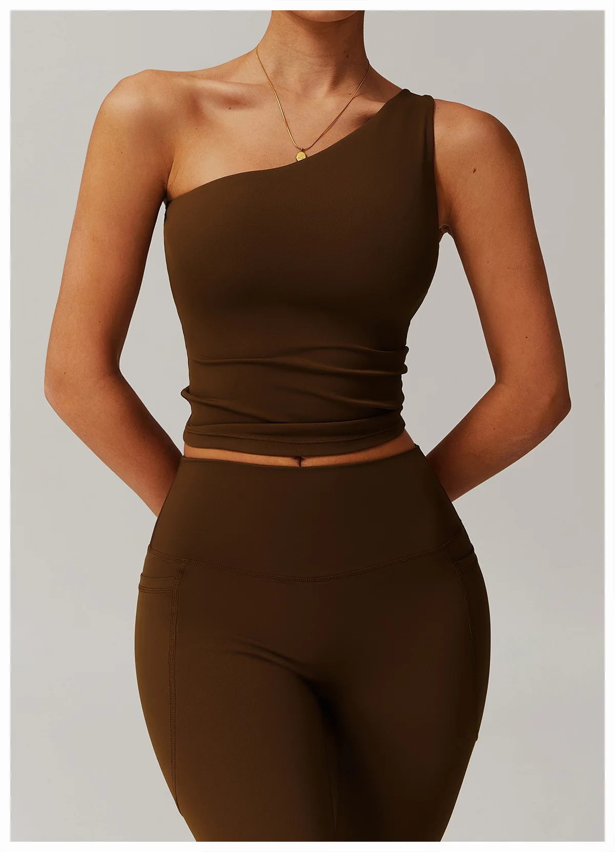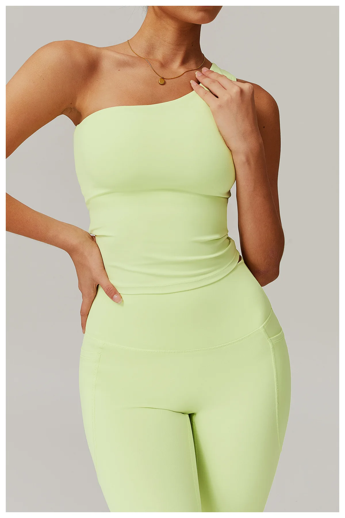 New Sexy Vest One Shoulder Running Sports Tank Top Women's Oblique Shoulder Sleeveless Fitness Yoga Vest Top Sports Push Up Bras