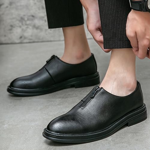 Men's Leather Slip-On Low Heel Oxford Shoes Fashion Round Toe Lightweight Non-Slip Zipper Closure Dress Loafers for Driving Business Office Shoes 6