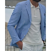 More information about Men's Graduation Blazer Business Cocktail Party Wedding Party Fashion Casual Spring Autumn / Fall Cotton Blend Stripes Pocket Buttons Comfortable Single Breasted Blazer Royal Blue