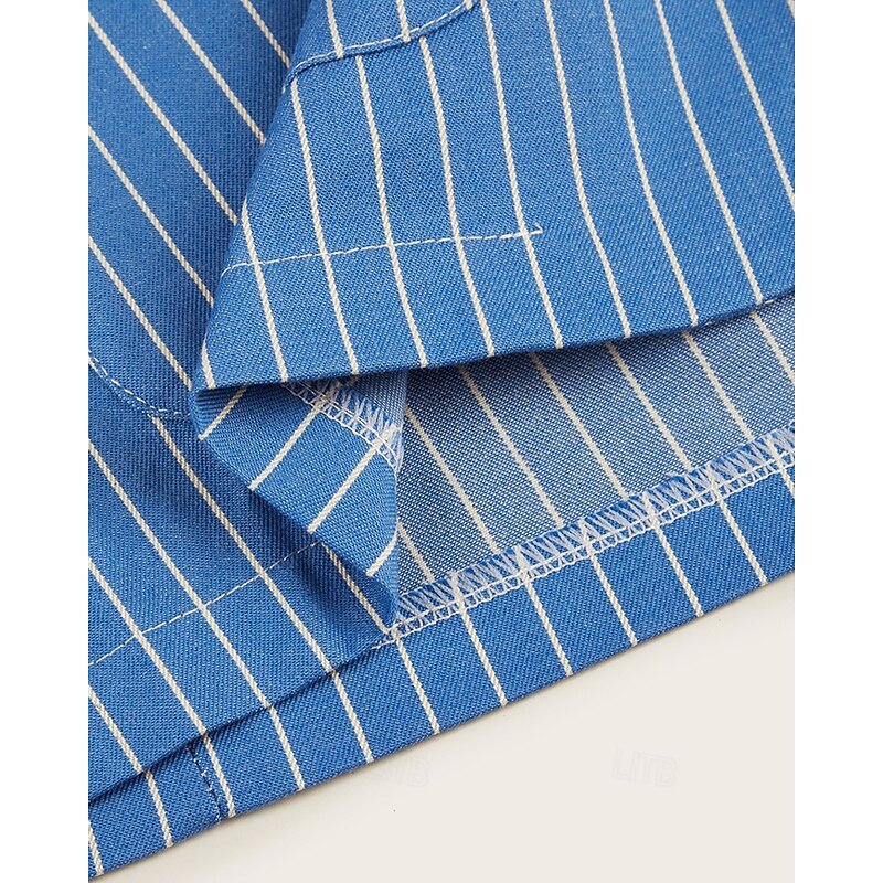Men's Graduation Blazer Business Cocktail Party Wedding Party Fashion Casual Spring Autumn / Fall Cotton Blend Stripes Pocket Buttons Comfortable Single Breasted Blazer Royal Blue 6