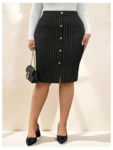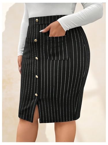 • Features: Plus size pencil skirt for curvy women, plaid, high waisted, button front, knee length, pockets