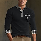 More information about Men's Plaid Faith Polo Shirts Golf Shirt Long Sleeve Polo Shirts Collared Shirts Business Casual WorkWear Formal Wear Festival Wear 3D Print Buttons Fall & Winter Black White Wine