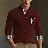 Men's Plaid Faith Polo Shirts Golf Shirt Long Sleeve Polo Shirts Collared Shirts Business Casual WorkWear Formal Wear Festival Wear 3D Print Buttons Fall & Winter Black White Wine 6