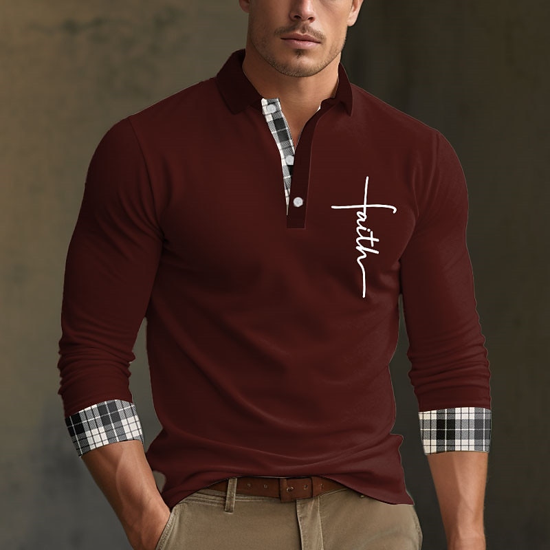 HOT ! Men's Plaid Faith Polo Shirts Golf Shirt Long Sleeve Polo Shirts Collared Shirts Business Casual WorkWear Formal Wear Festival Wear 3D Print Buttons Fall & Winter Black White Wine