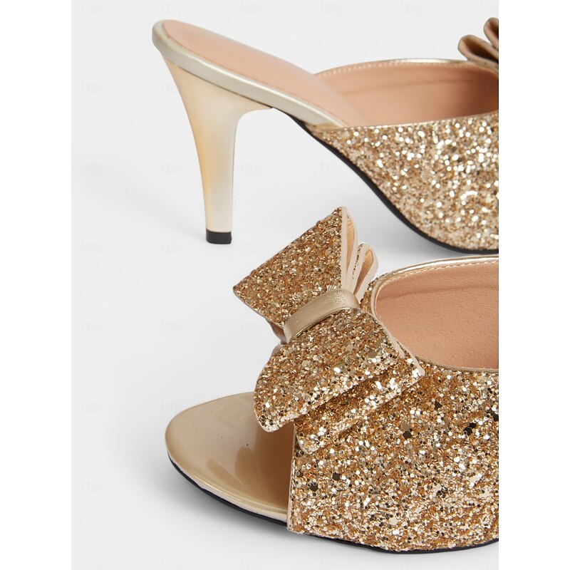 More information about Women's Gold Glitter Bow Stiletto Mules – Glamorous Party & Romantic Dinner Shoes