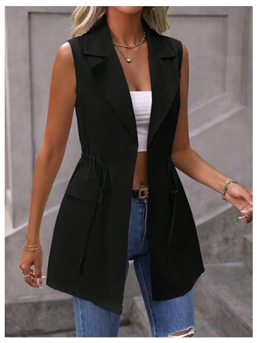 • Drawstring Blazer Vest, Long Coat, Office Clothes, Business Casual Outfits, Lapel Neck, Tie Waist, Casual Blazer