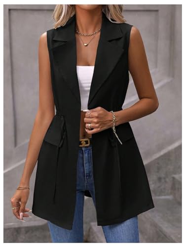 Fabric type: 100% PolyesterCare instructions: Machine WashOrigin: ImportedDrawstring Blazer Vest, Long Coat, Office Clothes, Business Casual Outfits, Lapel Neck, Tie Waist, Casual BlazerSoft and skin-friendly fabric has no stretchPerfect to match with tank tops, sweater, tee top, casual pants, joggers, leggings and jeansFit for work, office, dating, everyday wear, casual wear, holiday, travel, going out, outdoor, vacation, coastal summer outfitPlease refer to size guide carefully before purchasing at below description(Tips:The Product Measurement is clothes size, NOT human body size)