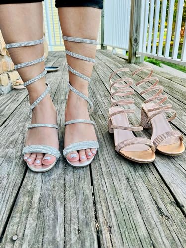 • TOP Moda Women's Formal Rhinestone High Heel Sandal Ankle Strap , Wrap around coil strap design .