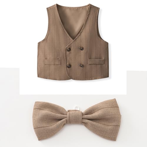 • ADORABLE--shirt, vest, bow tie, pants 4pcs Boys' Blazer Vest and Pants Set,Gentleman Outfits, removable tie, handsome your little lad.