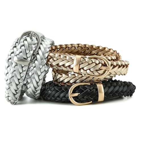 • Braided Leather Belt: The belt is beautiful hand woven, made out of the smooth leather-like material that provides you with a soft touch, finished with a gold alloy buckle; For good care, spot clean only