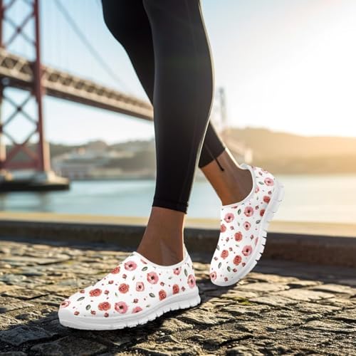 Flowers Print Women Slip On Low Top Casual Loafers Comfortable Travel Walking Shoes Non Slip Sports Mesh Running Sneakers US 5-13 for Winter 2