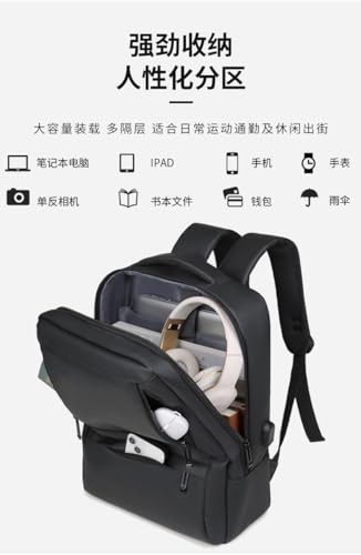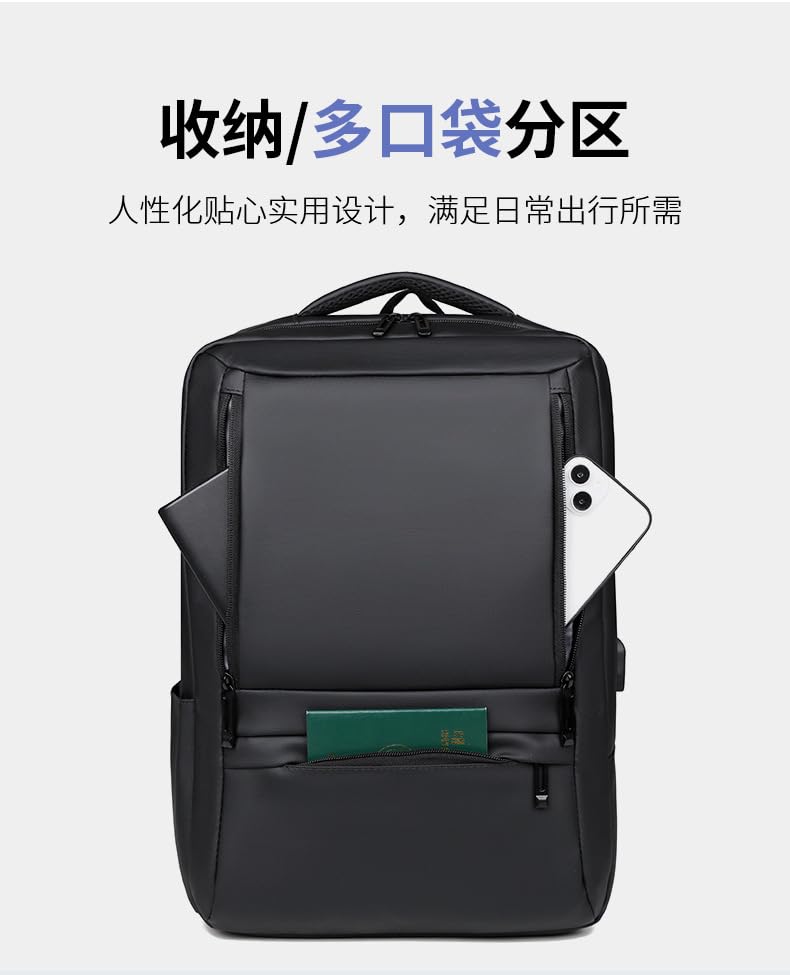 HOT ! Multi-functional computer bag, expandable, solid color, simple business, new men's commuting water-resistant backpack (black)