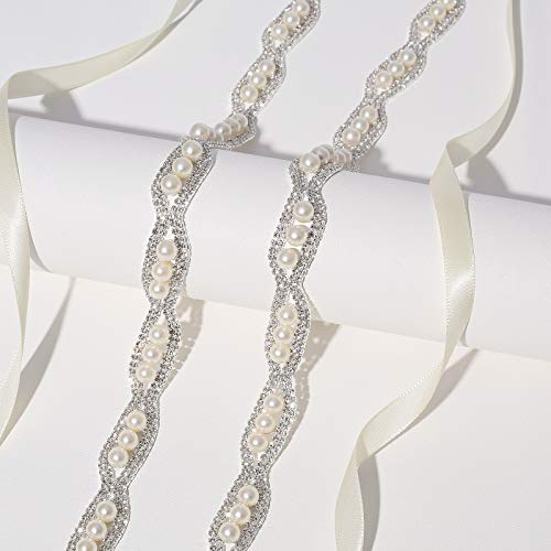 Thin Crystal Wedding Belt Sliver Bridal Belt Bridesmaid Sash with Pearls Rhinestones for Women Dress Accessories