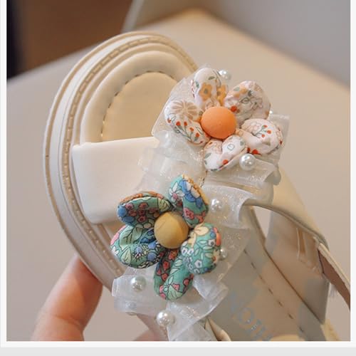 Girls Sandals Leather Soft Princess Flat Shoes Toddler Flower Open-Toe Dress Sliders For Little Big Kids 7