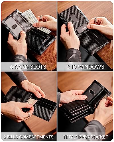 YESIIW Apple Airtag Wallet Men Slim: Air Tag Wallet with Airtag Holder, RFID Blocking, Bifold, Front Pocket, Minimalist Card Wallet, Carbon Fiber Wallet 6