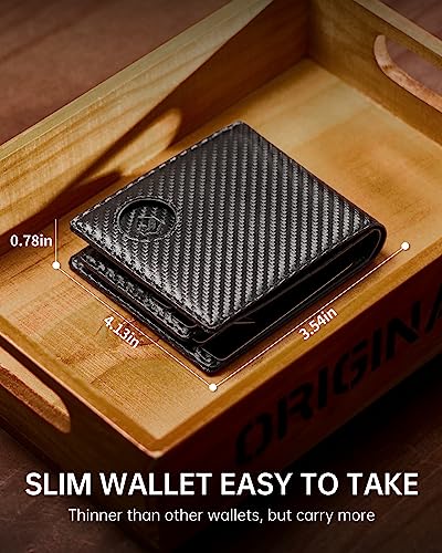 HOT ! YESIIW Apple Airtag Wallet Men Slim: Air Tag Wallet with Airtag Holder, RFID Blocking, Bifold, Front Pocket, Minimalist Card Wallet, Carbon Fiber Wallet