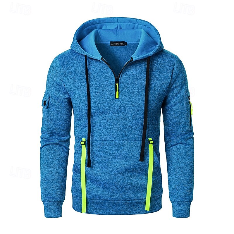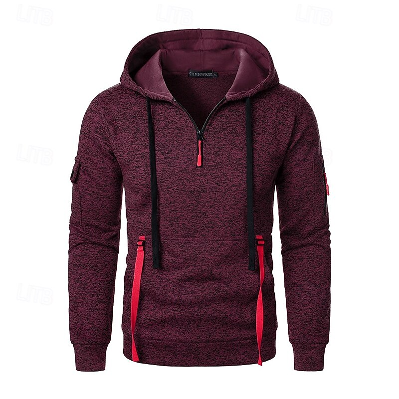 More information about Men's Hoodie Pullover Hoodie Sweatshirt Quarter Zip Hoodie Tactical Hoodie Black Wine Navy Blue Blue Hooded Plain Multi Pocket Sports & Outdoor Daily Streetwear Cool Casual Athletic All Seasons
