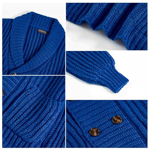 Men's Cable Knit Cardigan Sweater Shawl Collar Double Breasted Long Sleeve Solid Fall Sweaters