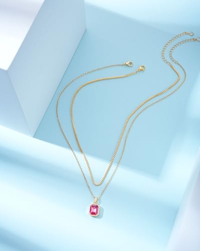 • 【Gold Layered Necklace】: The layered pendant necklace consists of two separate chains. The short necklace is a delicate box necklace and the long necklace is set with a rectangular single crystal pendant. You can choose one or two to wear together