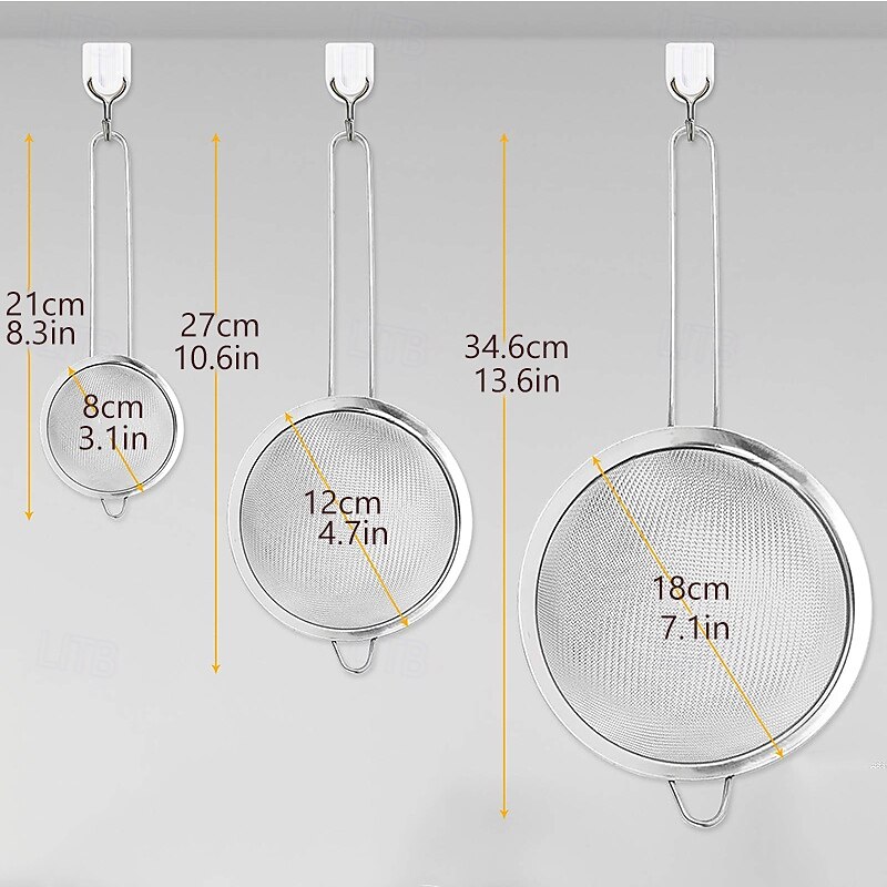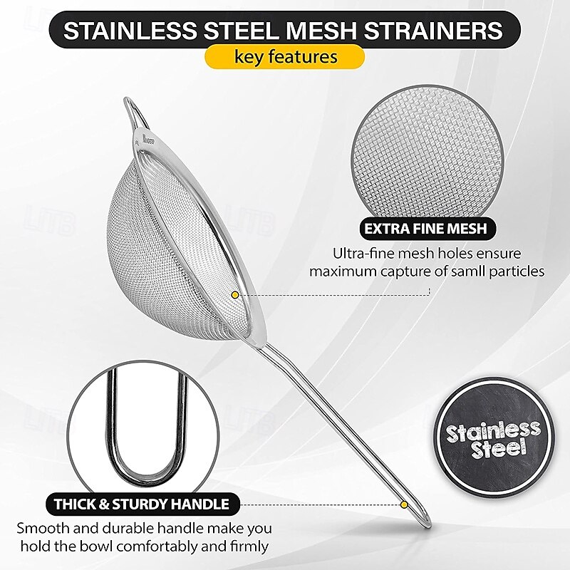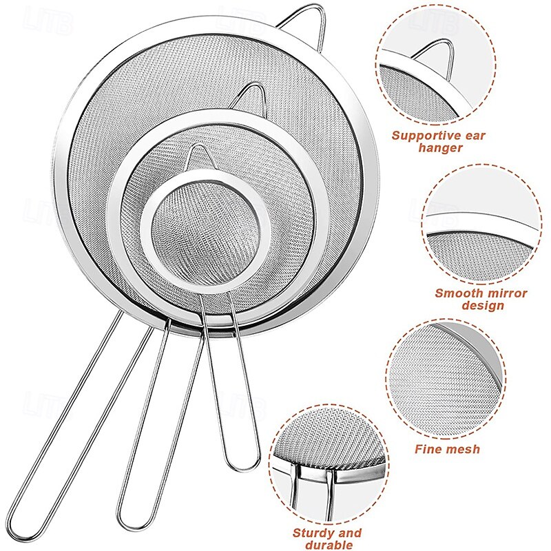 Set of 3 Fine Mesh Strainer Multifunction Stainless Steel Strainers with Sturdy Handle 6