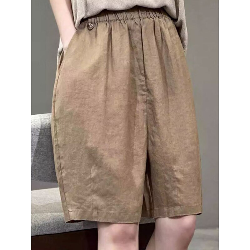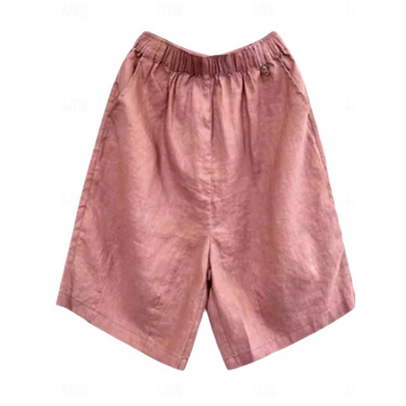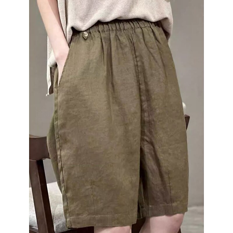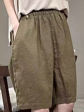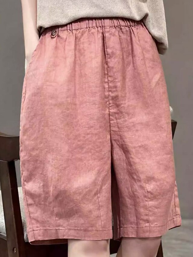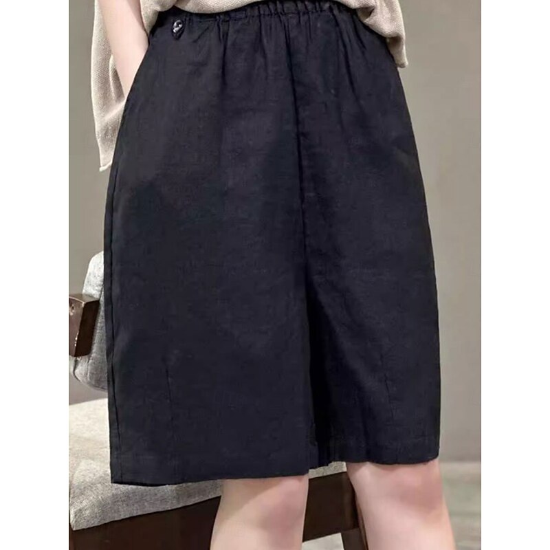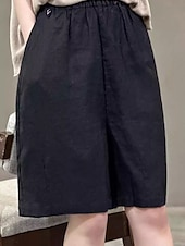 More information about Women's Linen-Inspired Shorts Cotton Linen Pants Culottes Wide Leg Fashion Streetwear Knee Length Medium Waist Plain Pocket Elastic Waistband Comfy Soft Comfortable Micro-elastic Outdoor Street