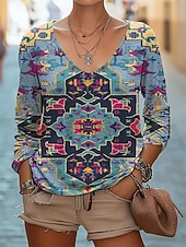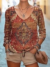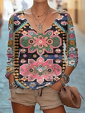 More information about Women's Blouse Floral Retro Vintage Ethnic Long Sleeve V Neck Regular Tops Daily Holiday Print Black Pink Wine Red Royal Blue Summer Spring Fall
