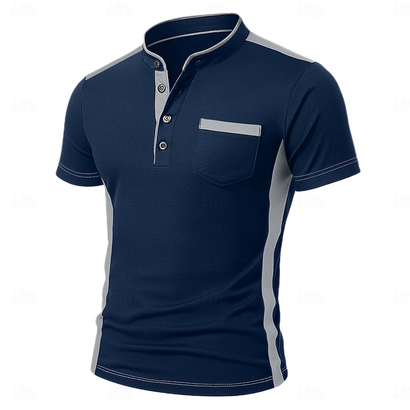 More information about Men's Henley Shirt Tee Henley Top Short Sleeve Solid Color Plain Fashion Designer Casual Color Block Buttons Henley Outdoor Casual Daily Summer All Seasons Black White Navy Blue Henley T-Shirt