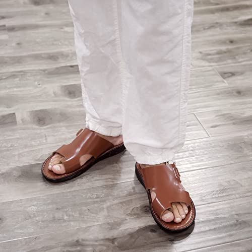 Jazamé Men's 69213 Leather Slip On Peasant Toe Loop Roman Flip Flop Dress Sandals 5