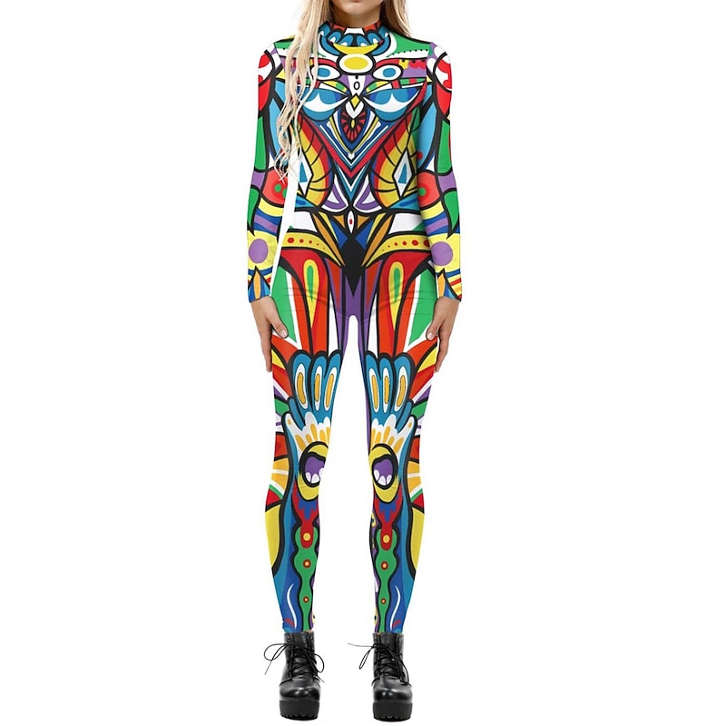 Skeleton Skull Halloween Cosplay Costume Bodysuits Full Body Catsuit Carnival Costume Full Body Suit One Piece Cosplay Kid's Adults' Women's Masquerade Party Halloween Easy Halloween Costumes Dress Up 25