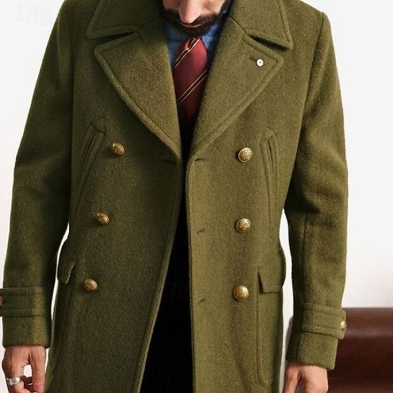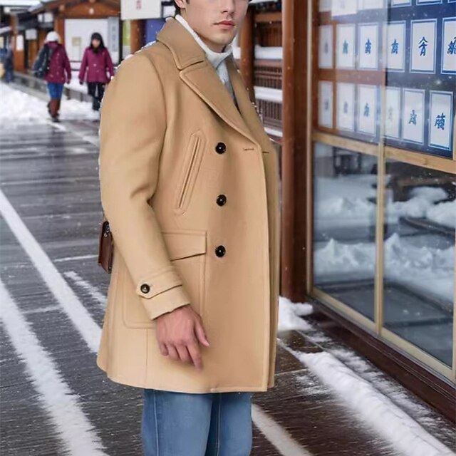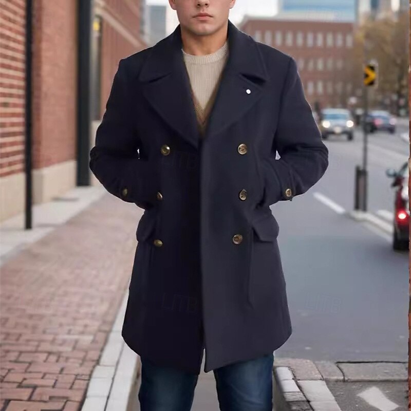 More information about Men's Peacoat Trench Coat Daily Vacation Fall & Winter Polyester Thermal Warm Outerwear Clothing Apparel Fashion Classic Plain Pocket Lapel Double Breasted