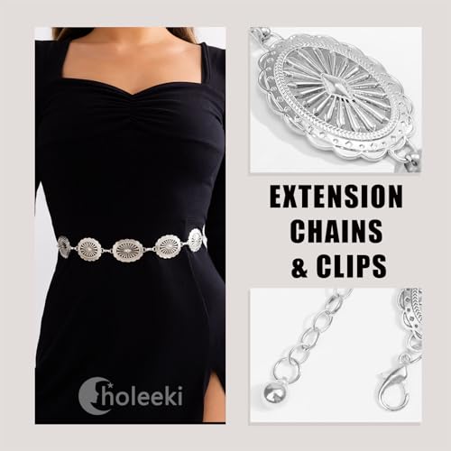 Women Concho Chain Belt Metal Link Western Cowgirl Turquoise Waist Chain Belts for Dress Jeans 5