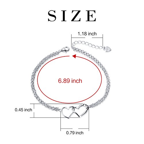 More information about DAOCHONG S925 Sterling Silver I Love U Forever Love Heart Double Chain Bracelets,7+2 inches