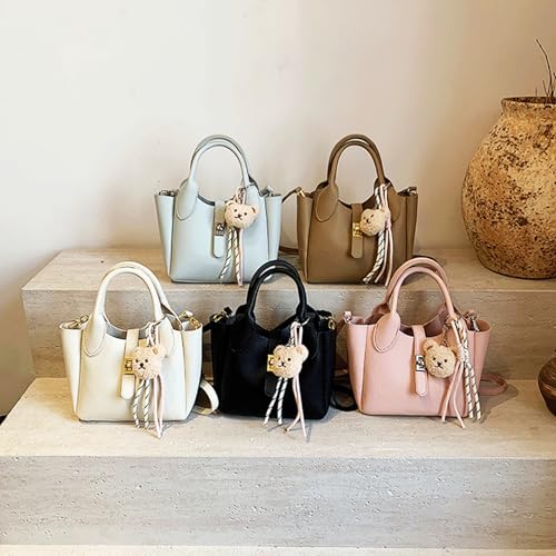 HOT ! Mini Bucket Bag with Cute Charms Vintage Crossbody Handbag Leather Bucket Purses Handbag for Women