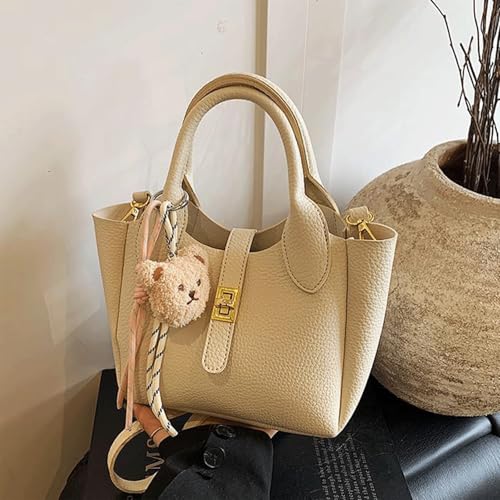Mini Bucket Bag with Cute Charms Vintage Crossbody Handbag Leather Bucket Purses Handbag for Women