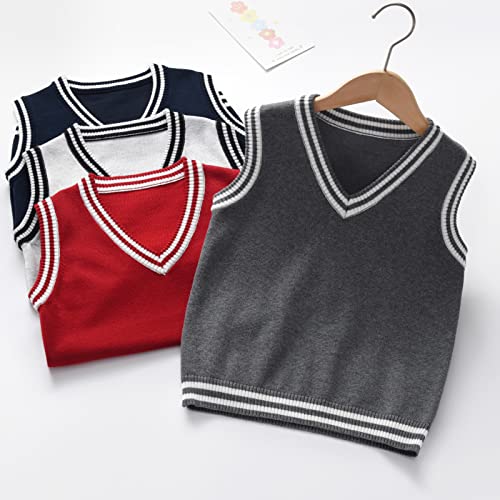 Boys Girls V-Neck Knitted Sweater Vest 100% Cotton Kids Knit Sweater Vest Sleeveless Pullover Waistcoat 3