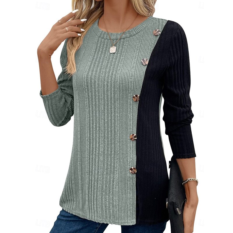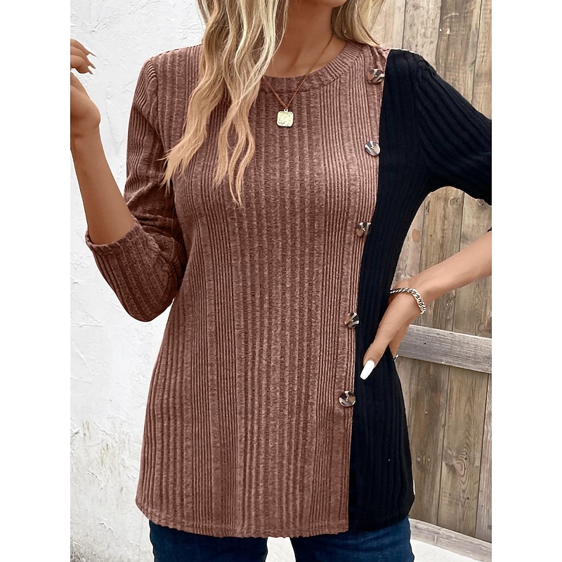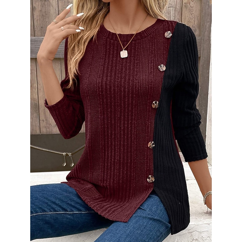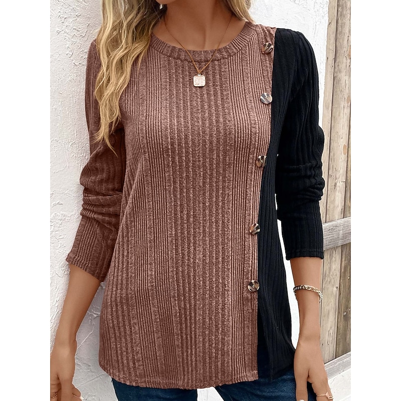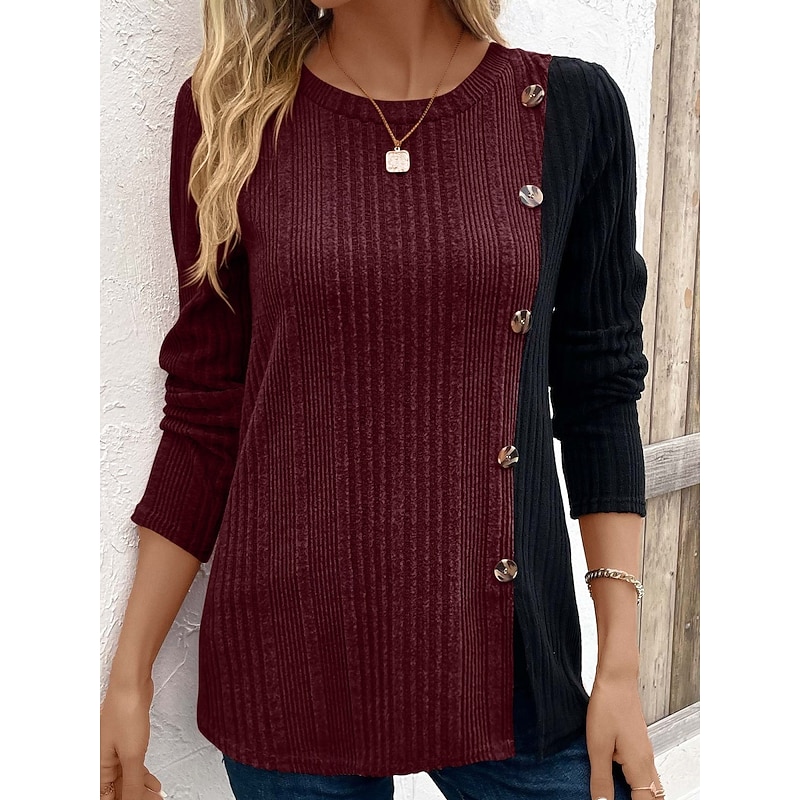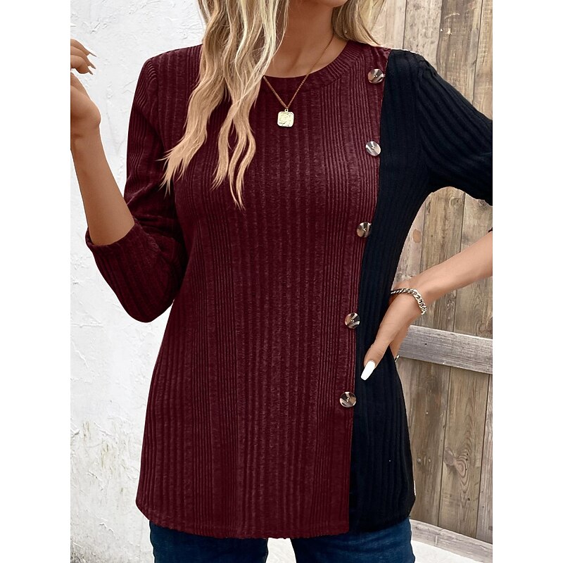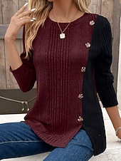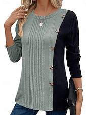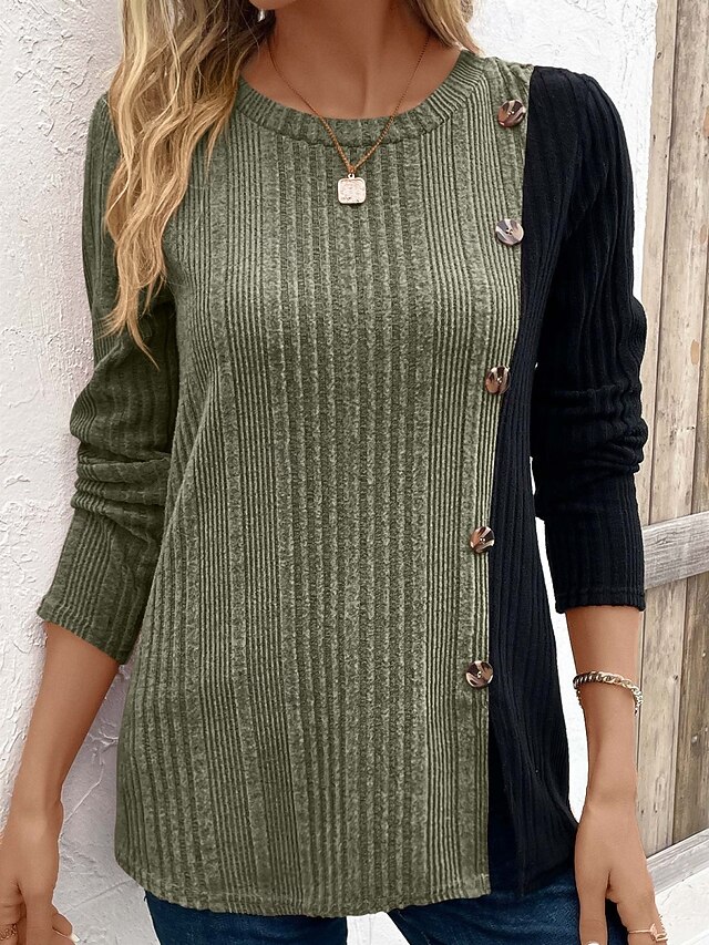 More information about Women's Blouse Color Block Stylish Casual Long Sleeve Crew Neck Regular Tops Daily Ruched Buttons Light Green Wine Army Green Brown Khaki Spring Fall Winter