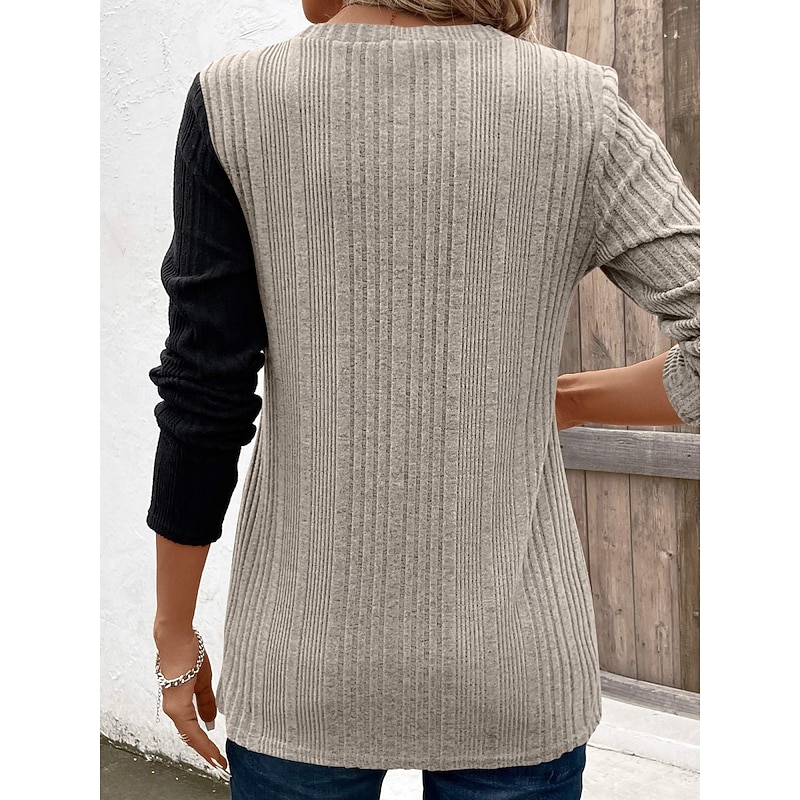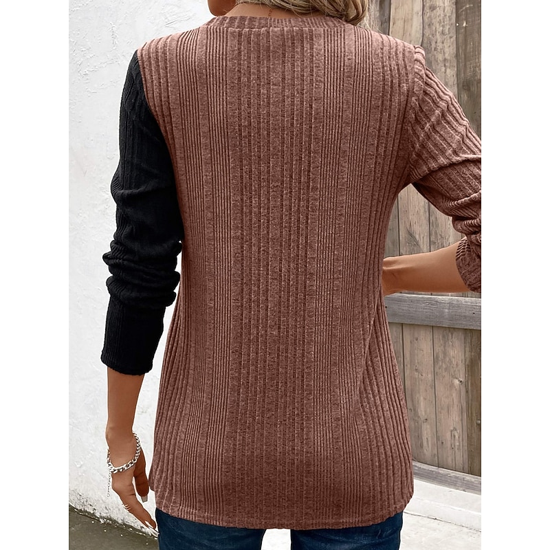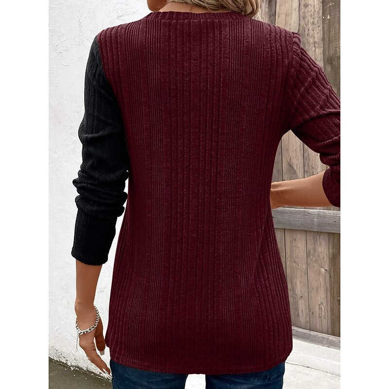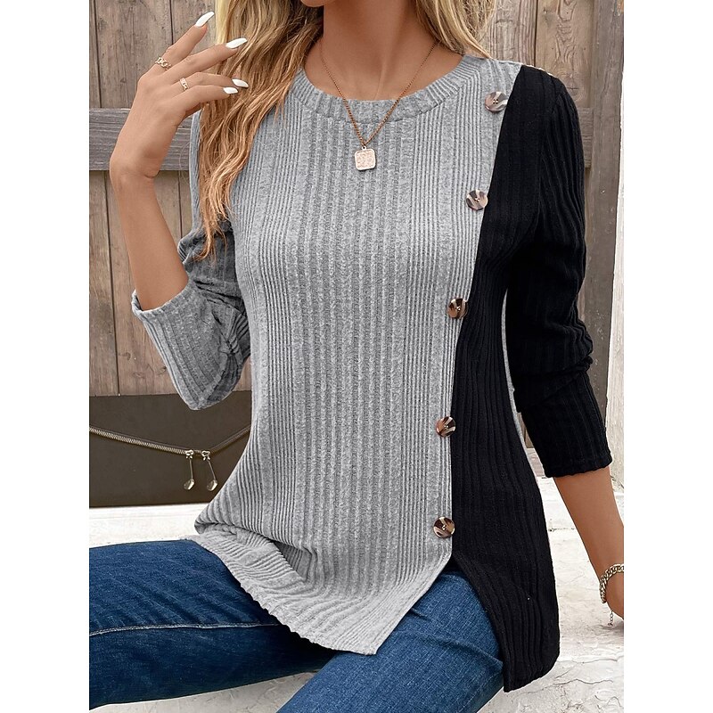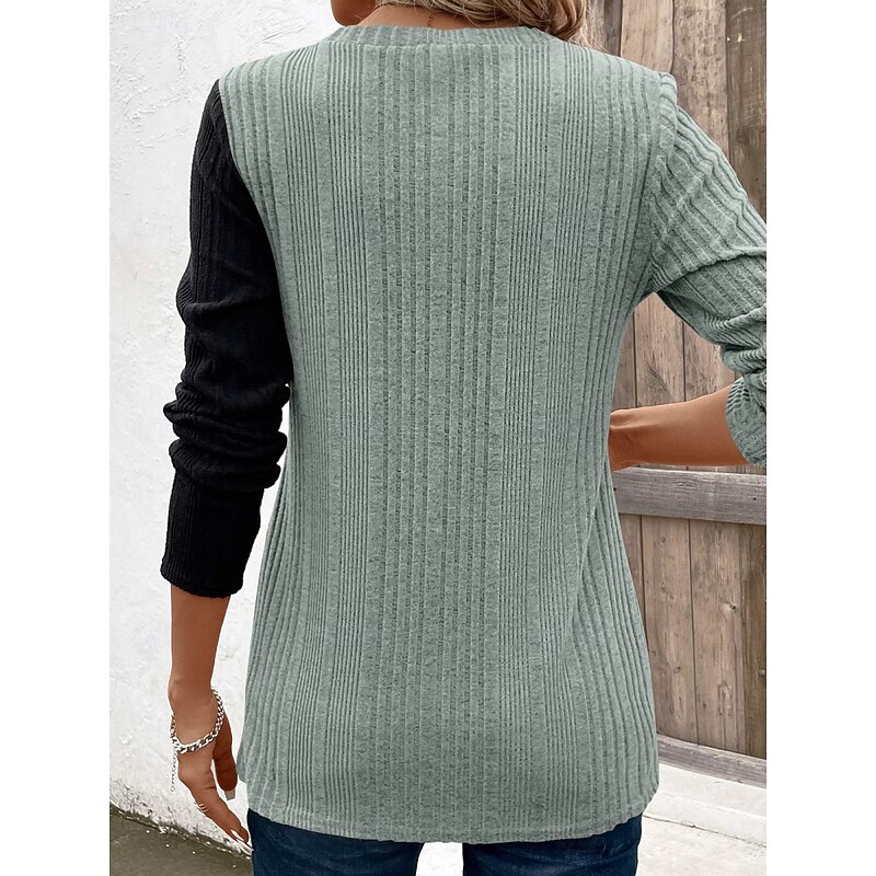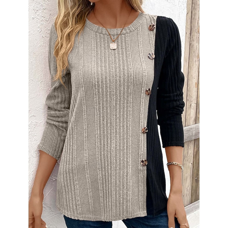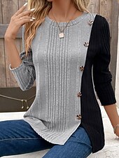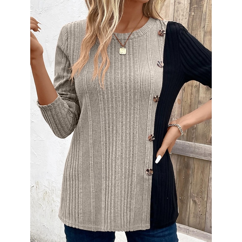 More information about Women's Blouse Color Block Stylish Casual Long Sleeve Crew Neck Regular Tops Daily Ruched Buttons Light Green Wine Army Green Brown Khaki Spring Fall Winter