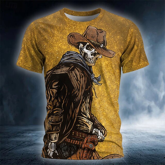 $20.99 - David Lozeau Men's Skull Cowboy T Shirt Short Sleeve T shirt 3D Print Crew Neck Shirt Gothic Horror Party Street Casual Lake Blue Yellow Red Summer Spring All Seasons Clothing Apparel S M L XL XXL XXX 2025. Shop for cheap Halloween T shirts online? Buy at lightinthebox.com on sale today!