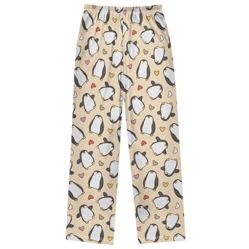 Boy's Lounge Pants Cute Cartoon Penguin Light Yellow Kids Jogger Pants Elastic Waist Long Bottoms with Pockets 6-14Y 6