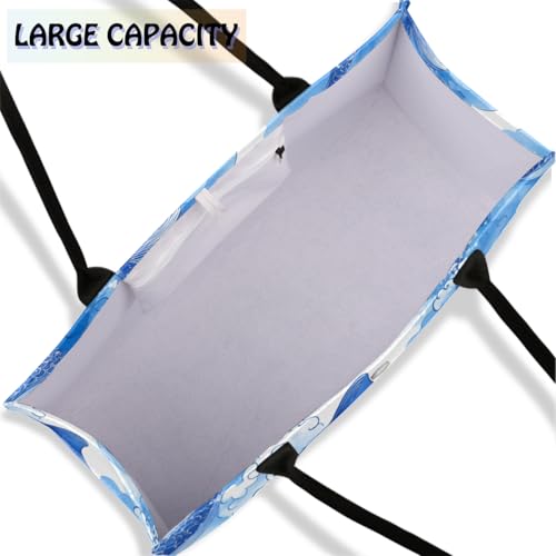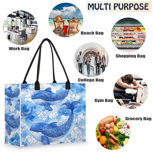 HOT ! Blue Dolphin Ocean Tote Bag for Women Large Beach Bag Reusable Tote Bags for Work Travel Beach Shopping