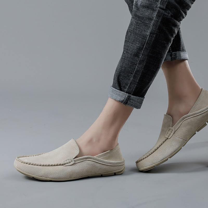 HOT ! Men's Loafers Shoes Round Toe Suede Vamp Apron Toe Loafer Shoes Anti-Slip Flat Heel Slip Resistant Walking Slip-ons