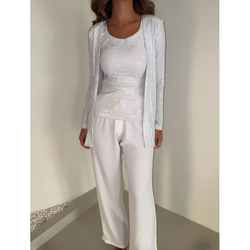 HOT ! Women's 3 Pieces Suits Formal Wedding Guest Jersey Stretch Crepe Elegant Simple Luxurious Long Sleeve Ankle Length