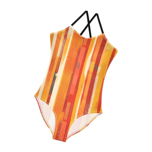 Red Stripes Kids Girls 1-Piece Swimsuit Beach Swimming Suits with Adjustable Straps Quick Dry 1
