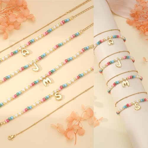 Colourful Beaded Initial Bracelets for Women Dainty Double Layered 14k Gold Bracelets for Women Non Tarnish with Letter Teen Girl Gifts Trendy Stuff Mom Sister Birthday Gifts Bubble Summer Jewelry 5