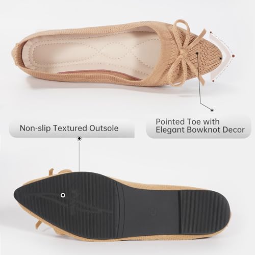 Women's Pointed Toe Flats Shoes for Ladies Girls Cute Bowknot Knit Breathable Comfortable Slip On Casual Dressy Ballet Flats for Walking Work Business 6