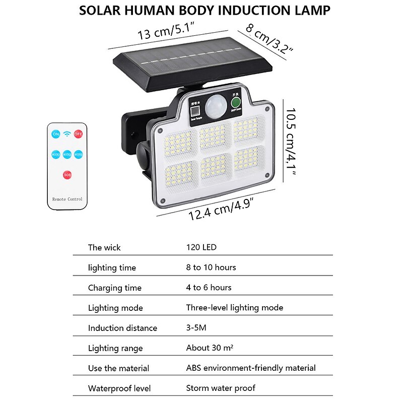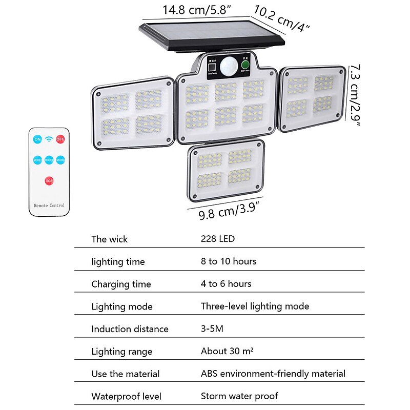 More information about Solar Flood Lights Security LED Outdoor Lights 120/168/228 LED Bead Outdoor Solar Remote Control Wall Lamp LED Body Sensing Garden Lamp Home Garage Lamp Road Lighting Solar Lamp