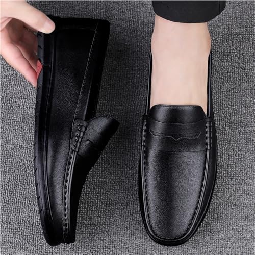Men's Loafers Round Toe Leather Fashion Slip-on Lightweight Flat Heel Walking 6