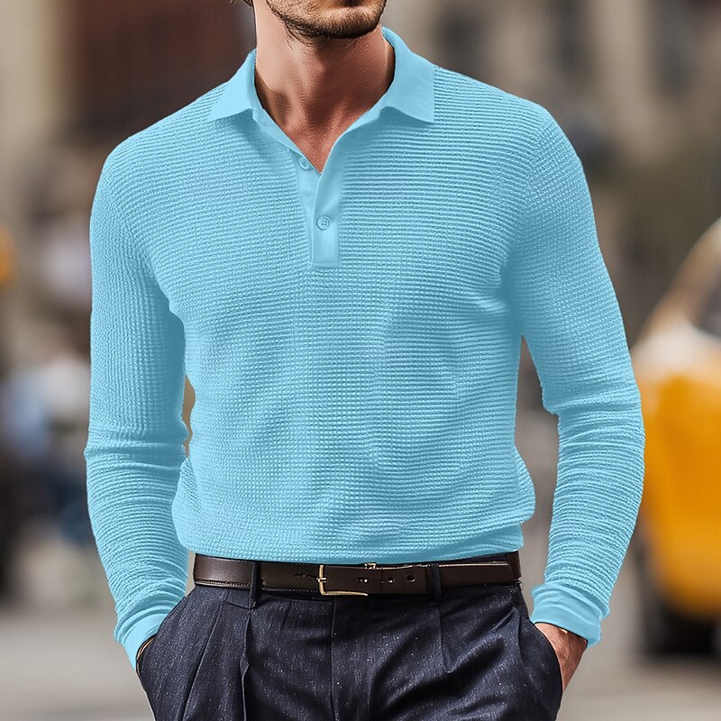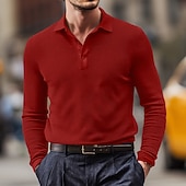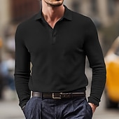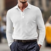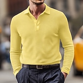 More information about Men's Waffle Polo Shirts Golf Shirt Street Casual Lapel Long Sleeve Basic Modern Plain Textured Buttons Spring Fall All Seasons Regular Fit White Black Yellow Red Blue Gray Waffle Polo Shirts